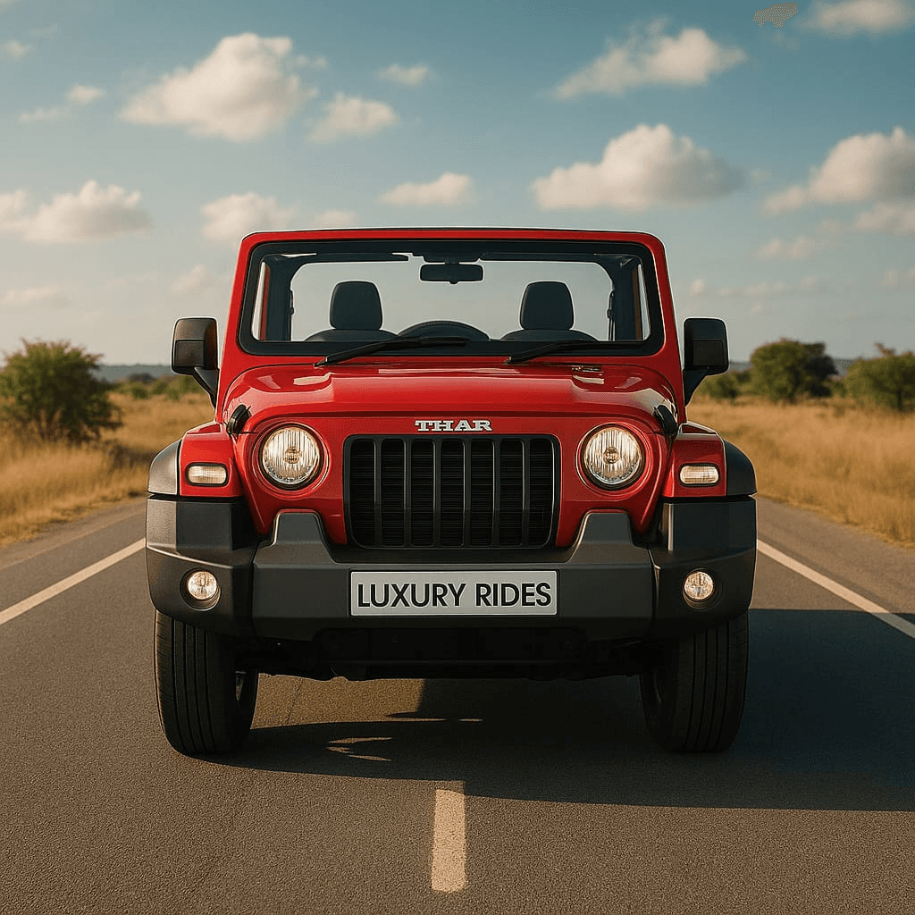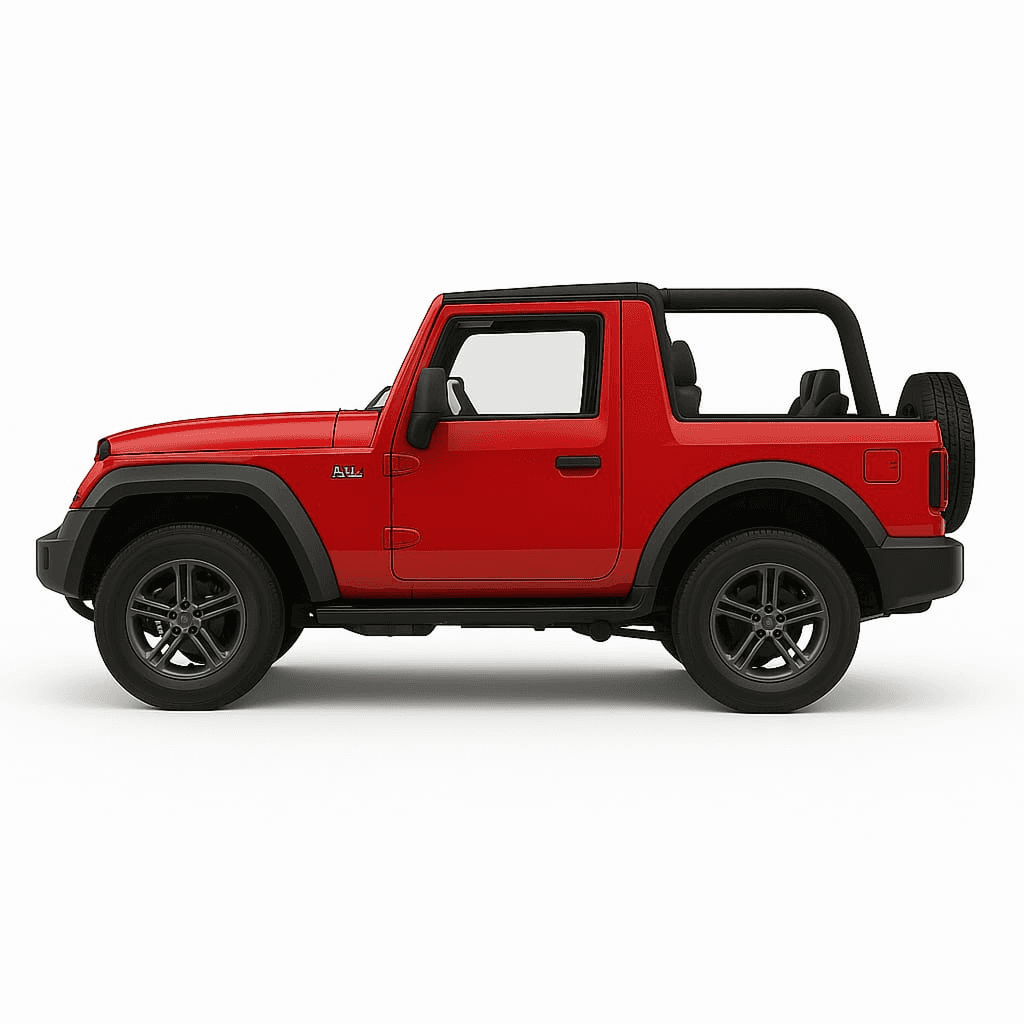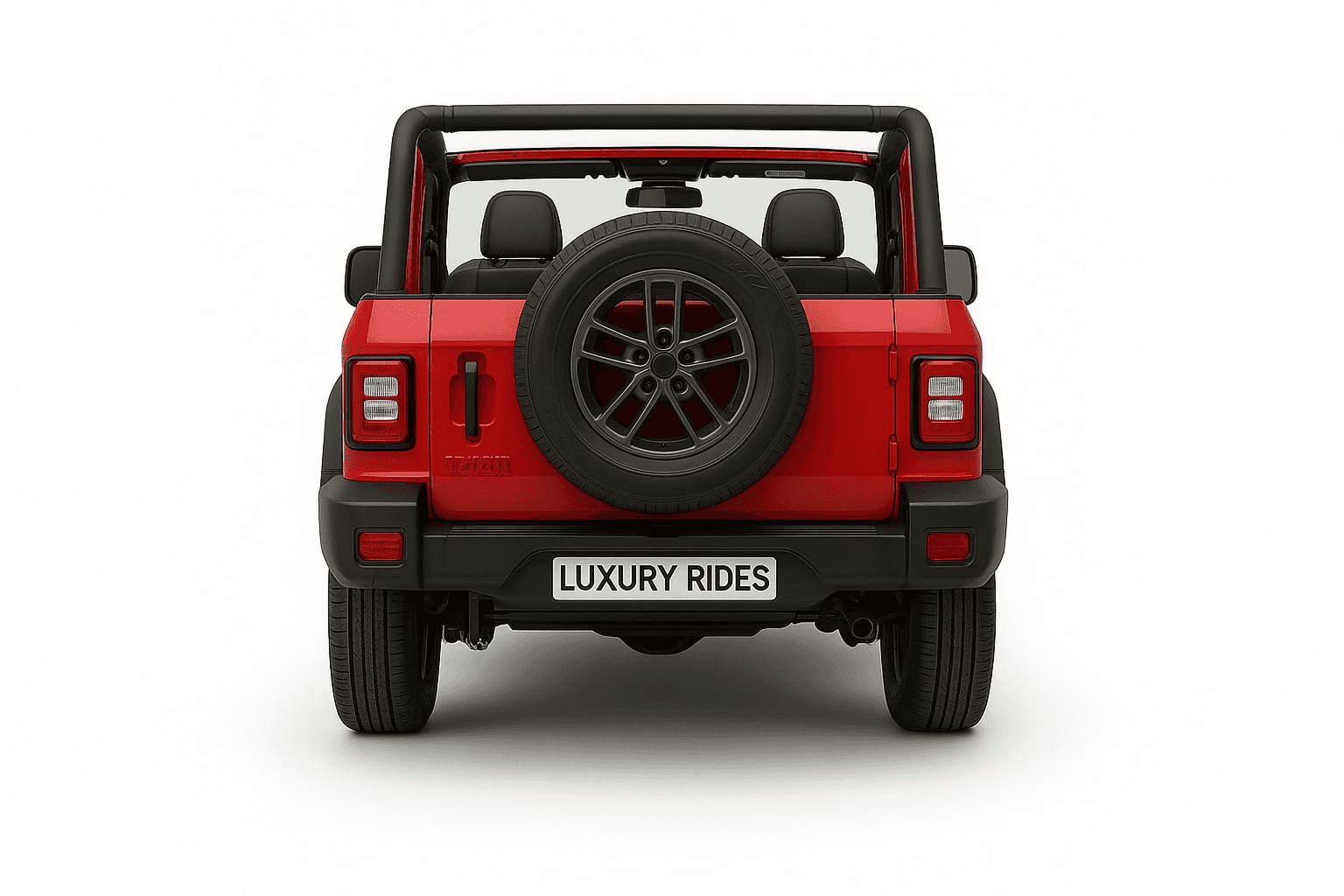 Freedom in its purest form. The red Thar Convertible with black interiors lets you embrace the open road with adventure and attitude.